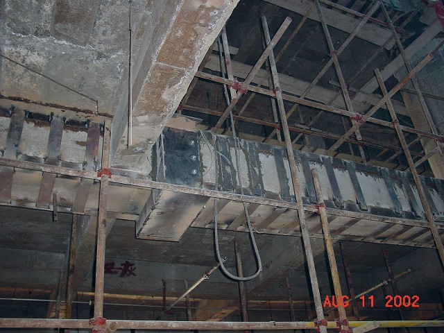 八一銀座大梁包角鋼加固處理