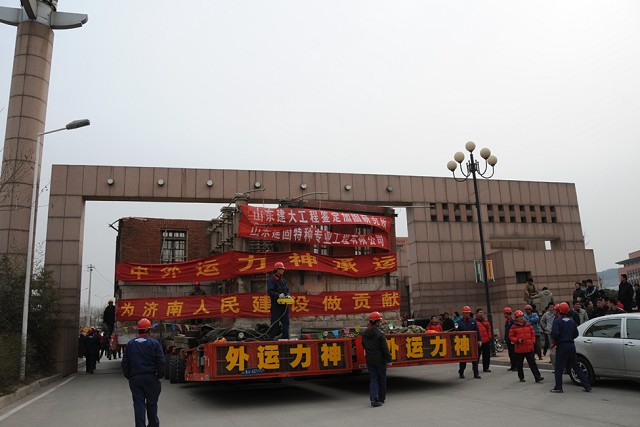 該建筑原位于繁華市區(qū),為了盡量減輕道路交通壓力, 對(duì)運(yùn)輸線路進(jìn)行了詳細(xì)勘察,遷移于3月1日21:38分開始,遷移過程中,老別墅四次屈身過街天橋,三過立交,于3月2日11:43安全到達(dá)山東建筑大學(xué)新校區(qū)。整個(gè)遷移過程歷時(shí)14小時(shí),遷移距離為30公里。