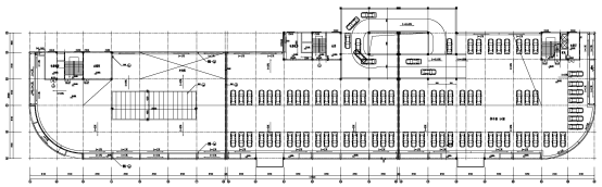 根據(jù)經(jīng)營要求,建筑物東側(cè)單體需進(jìn)行加層改造,加層后,原五層頂屋面變?yōu)榱鶎?,作為車庫或?jīng)營使用,原五層新世紀(jì)影城搬遷至新建七層。加層設(shè)計時,結(jié)構(gòu)標(biāo)高布置需在滿足影廳凈高要求的同時兼顧新加樓層與周邊建筑物車道的交通銜接、屋頂涼水塔、影院放映廳、已有樓梯、電梯等,平面、剖面布置較為復(fù)雜,剖面見圖2。