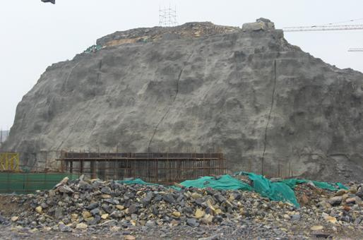 建大·教授花園小區(qū)位于山東建筑大學(xué)新校區(qū)西北方向,該小區(qū)內(nèi)的山體比較破碎,且局部山體臨空面與住宅樓距離較近,為了保證安全,避免巖石滾落和山體進(jìn)一步風(fēng)化,需要對(duì)山體進(jìn)行加固處理。加固范圍為場(chǎng)地完成后山體能裸露在地面以上的部分;加固部位為山體松動(dòng)、風(fēng)化的地方;結(jié)合景觀要求進(jìn)行加固。
