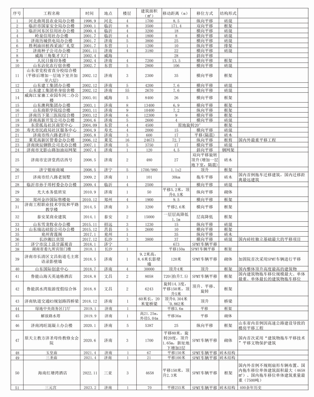 山東建筑大學(xué)工程鑒定加固研究院有限公司、山東建固特種專(zhuān)業(yè)工程有限公司國(guó)內(nèi)建筑物整體平移工程實(shí)踐匯總-建筑移位