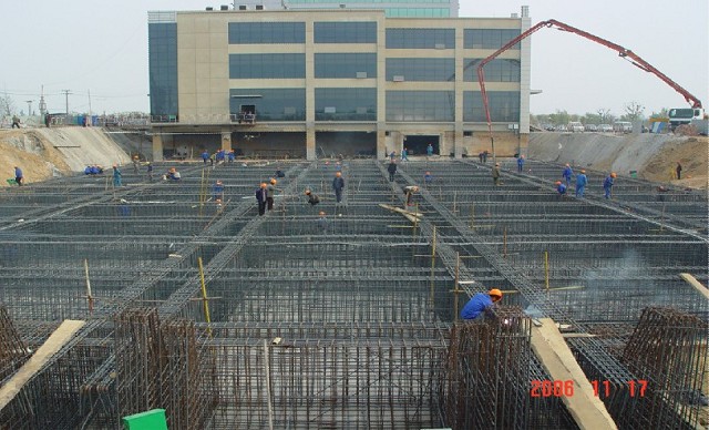 該建筑為框架—剪力墻結構,由主樓和裙樓兩部分組成,主樓地下1層,地上15層,裙樓地下1層,地上3層,長72.8m,寬41.3m,占地面積2700m2,總建筑面積24000m2,總高度67.6m, 基礎采用筏板基礎。