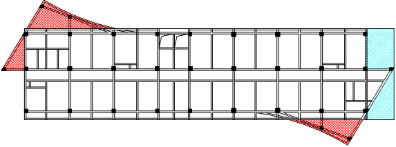 經(jīng)試算,選取在各層圖6所示增設(shè)剪力墻的方案,剪力墻延伸至9層頂。