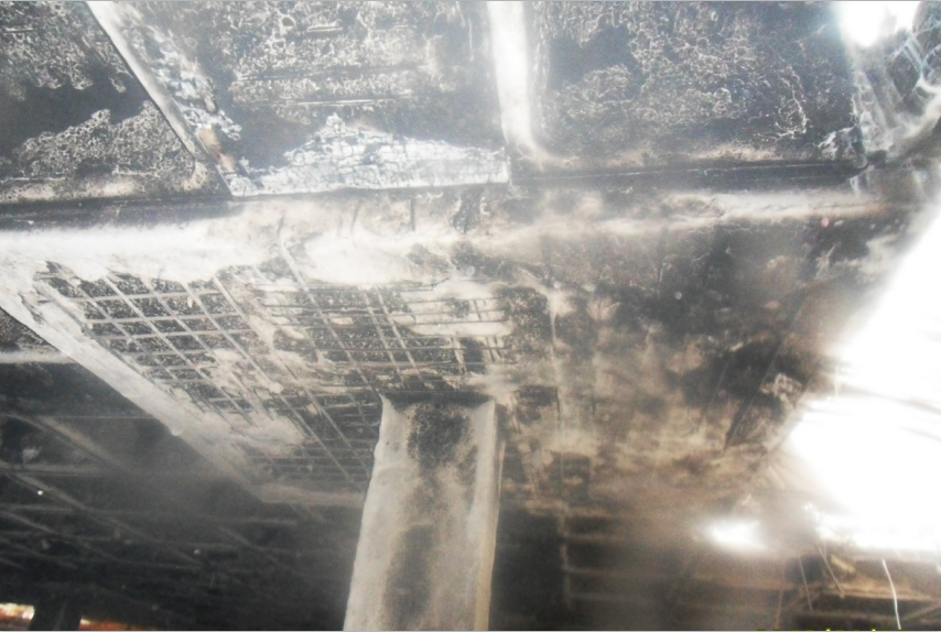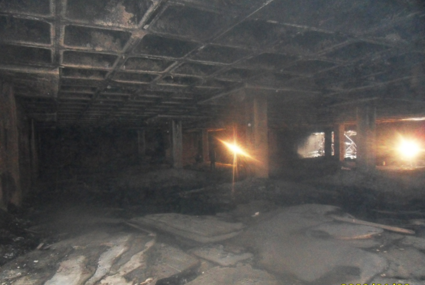 茌平縣安居康城16#-17#樓地下車(chē)庫(kù)總建筑面積3767.18m2,車(chē)庫(kù)混凝土澆筑時(shí)間是2012年12月11日-13日,2013年01月11日17:40左右,車(chē)庫(kù)樓板下方的塑料模殼著火,約1小時(shí)后消防隊(duì)員撲滅火災(zāi)。