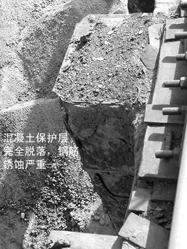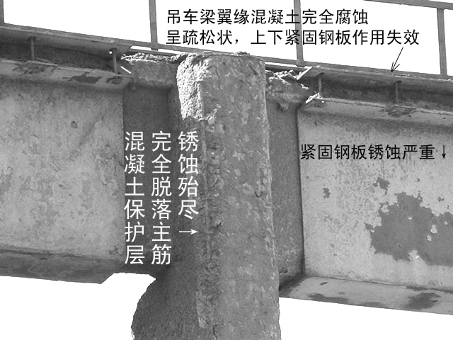 濟(jì)南鋼鐵廠除渣車間,吊車梁鋼筋銹蝕,混凝土疏松。通過(guò)我所對(duì)其進(jìn)行鑒定及加固,滿足了安全使用要求。